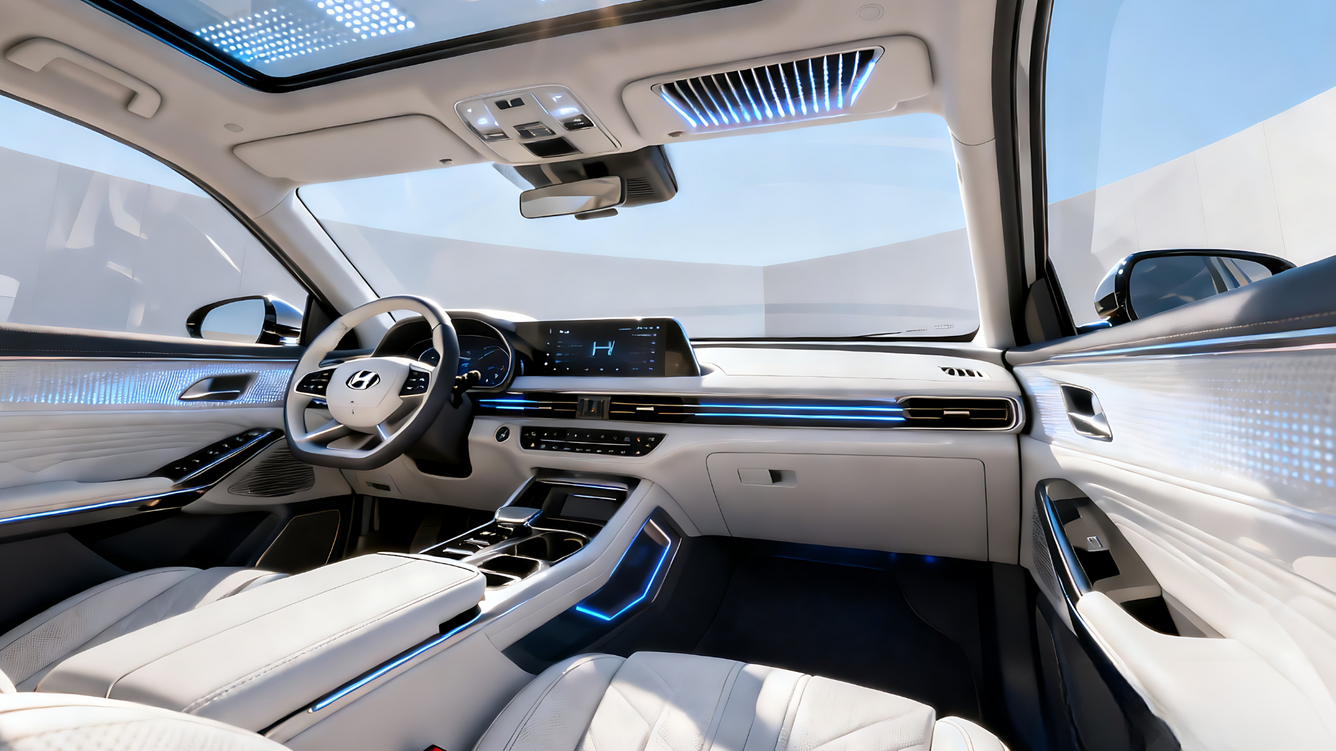 The dashboard is anchored by Hyundai’s new Pleos Connect infotainment system, powered by Android Automotive OS. A large free-standing touchscreen supports split-screen multitasking, customizable layouts, and seamless Apple CarPlay and Android Auto integration. A separate digital instrument cluster delivers clear, driver-focused information without distraction.