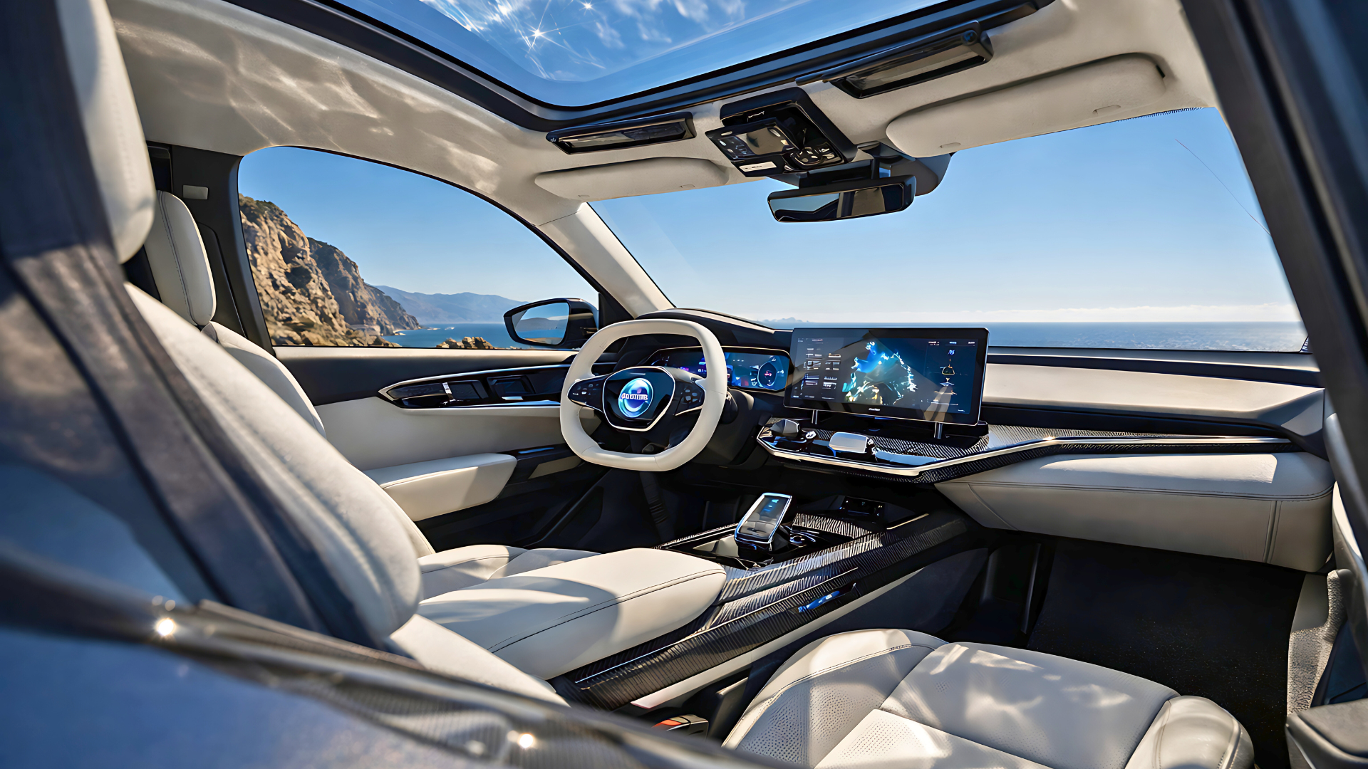 A portrait-oriented touchscreen up to 12 inches dominates the dashboard, running Android Automotive OS with built-in Google services. Navigation, apps, and voice control feel intuitive and deeply integrated, while over-the-air updates keep the system future-ready. Ambient lighting in soft, natural hues enhances relaxation, and the minimalist steering wheel places controls exactly where they’re needed.